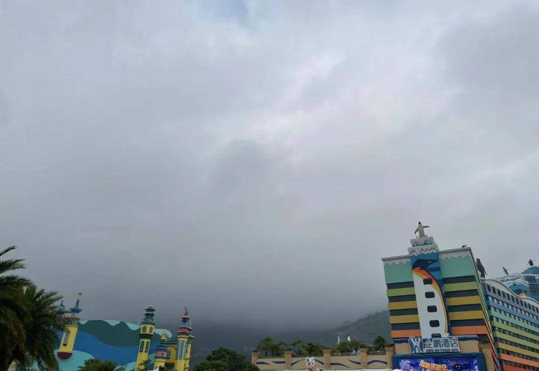 远处连绵的山被套上了一层又一层的白色烟气,烟雾缭绕下的长隆多少有点“仙儿”的意境,不过当天的温度不算高,细碎的湿气打在身上,皮肤黏糊不少,对于中年男人极不友好。玩的游戏项目,我们也只选人少的,晃晃悠悠的就来到了下午2点,看了白鲸剧场,第一次近距离看到了白鲸——真白真大,当然智商也相当可以,最主要是有动物自身的情绪,不管是和观众互动,还是跟自己的饲养员,我相信每一场都是不一样的,它们可以很配合,也可以不配合的东躲西藏,这种肆意的自由度要比马戏团窜火圈的狮子要幸福的多,起码,人类懂得尊重她们,是朋友,而非工具。