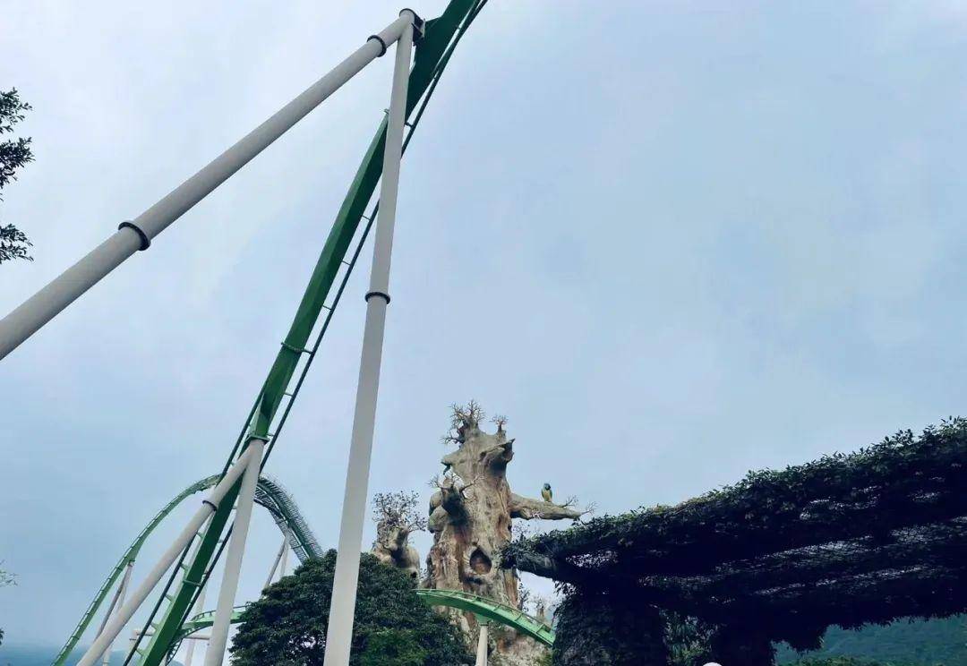 一眼望去,人山人海!至少50%是带着红领巾的小学生,剩下50%是穿着校服的中学生,一点不夸张,这是眼睛里装着的100%,还有为数不多的亲子家庭。大概珠海所有中小学的春游都安排给长隆海洋王国了吧;混迹在千万个带着红领巾穿着校服的小学生中间,有那么一瞬的错觉,世界太大,我们还小;可跟着他们一路走来,幻想无数的时候,就走到了过山车的排队处,对于“脑有残疾”动不动就晕车的我来说,不是太友好,赶紧走开~