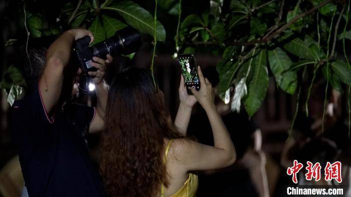 夏夜,游客拍摄“月下美人”玉蕊花。 陈英清 摄