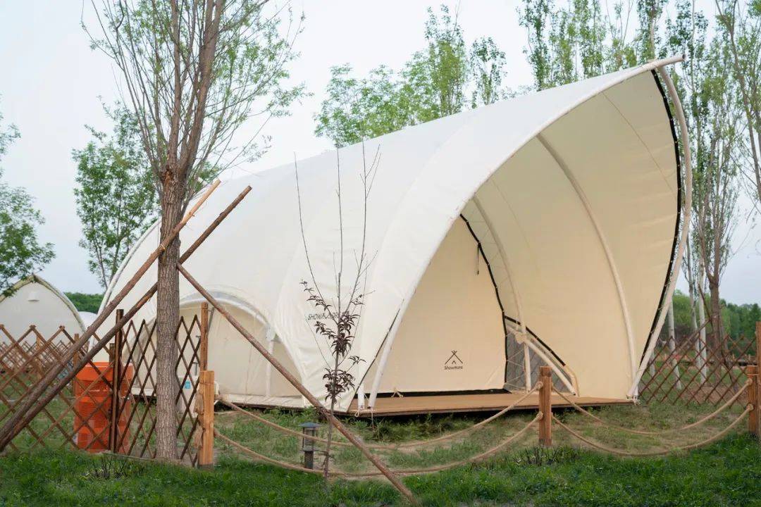 帆船酒店,以形似帆船而得名,每个帆船酒店都有独立院落,小院里有天幕和野餐桌,可以在这里野餐。帐篷内内配备了床、沙发、梳妆台,卫生间,还有夏天必不可少的空调,住在帆船酒店,可以出门见水,与大自然亲密接触。