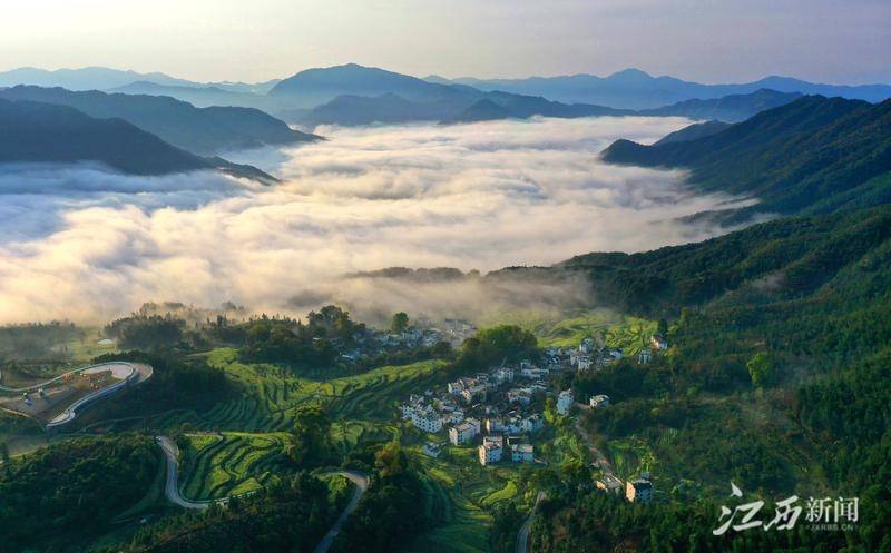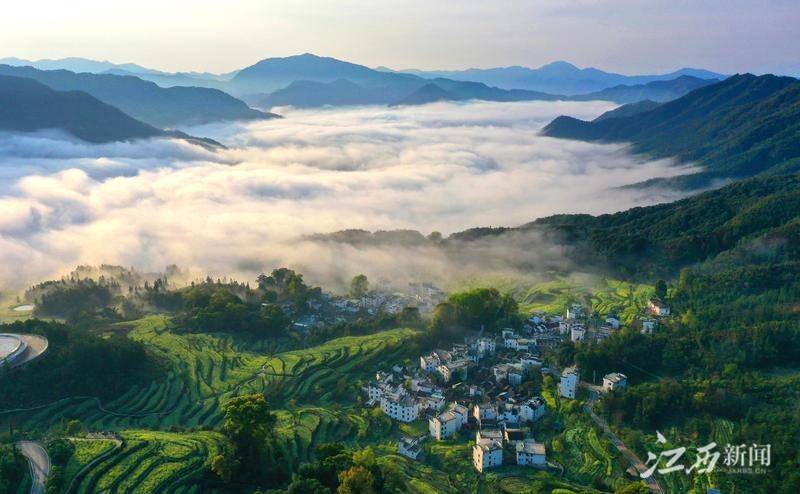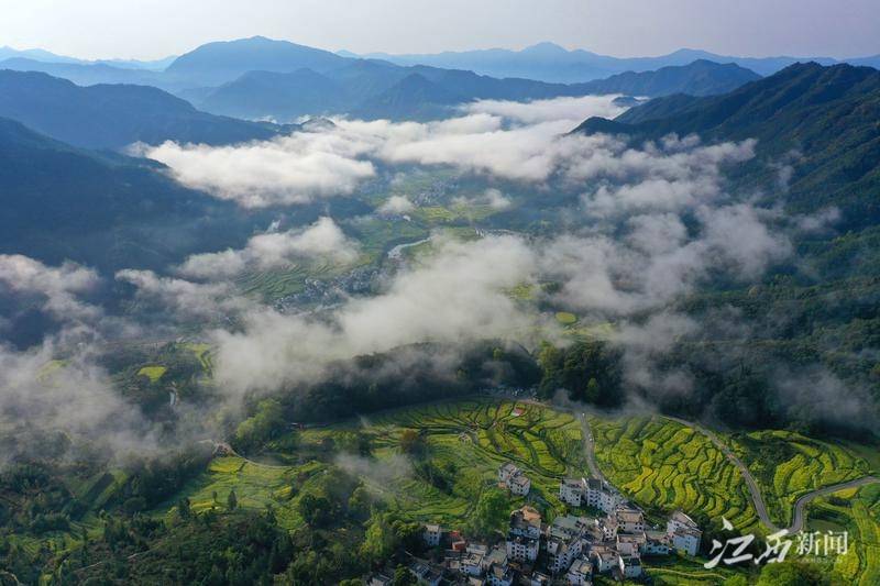 江西新闻客户端讯(江西日报全媒体首席记者 杨继红)4月1日,婺源县溪头乡江岭景区云蒸霞蔚、美丽如画。在高低起伏的山间金黄的油菜花仍然处于盛花期,层层叠叠的梯田被一片金黄覆盖,万亩花海成了春日里最靓丽的景色,引无数游人牵挂、前来打卡。近年来,婺源县紧紧围绕“建设中国最美乡村,勇当绿色崛起先锋”战略目标,扎实做好治山理水、显山露水文章,推动经济发展高质量和生态环境高颜值协同并进。