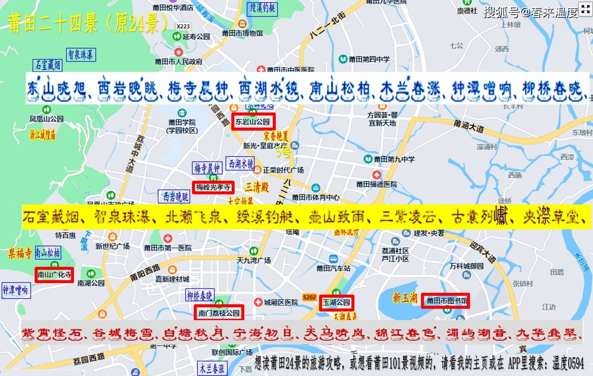 17、仙洋戏水(仙游);18、清塘栖鹭(秀屿);19、凤顶无尘(仙游);20、龟洋积雾(城厢);