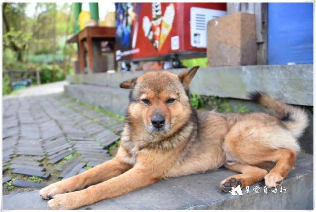 山路上可爱的小狗狗,是中华田园犬吧?不怕人,谁都可以上去摸摸它的头,好可爱!