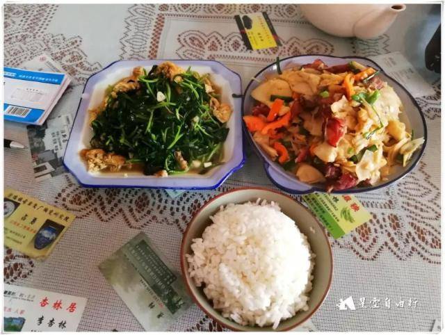 作为一个大吃货,怎么能不品尝当地的美食呢?中午在客栈抄了2个菜,点了一碗米饭,吃的那叫一个香!其实2个炒菜也并没有什么特别的,但食材都是当地现摘的,具有食物原本的味道,不像大棚里培育的蔬菜,没有味道;