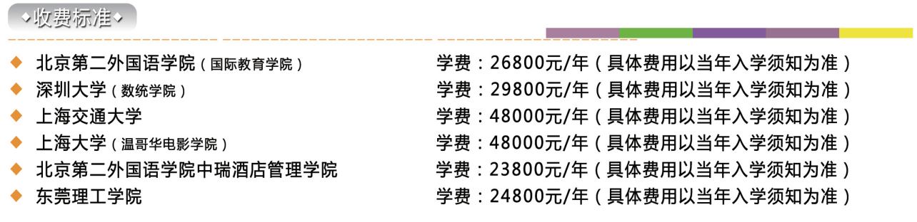 2.国际费用:3+1本科16万元(人民币),3+1+2本硕连读19万元(人民币)入学报名一次性缴清。