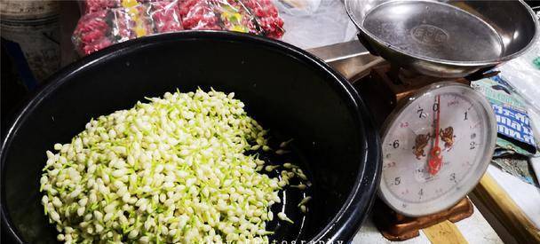 还有批发的是称重卖的,远看还以为称米,没想到走近一看是茉莉花骨朵。