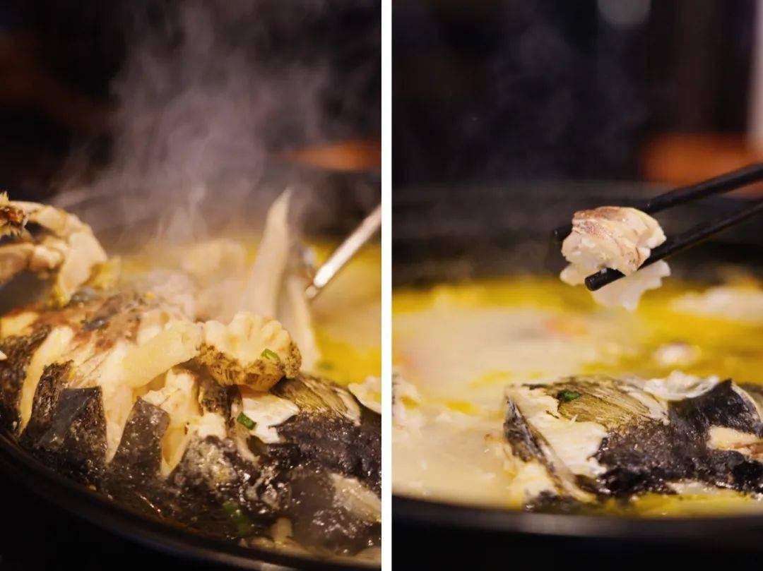 沐心岛的餐饮主打生态自然,最让人难忘的就是这道 八珍鱼头了。
