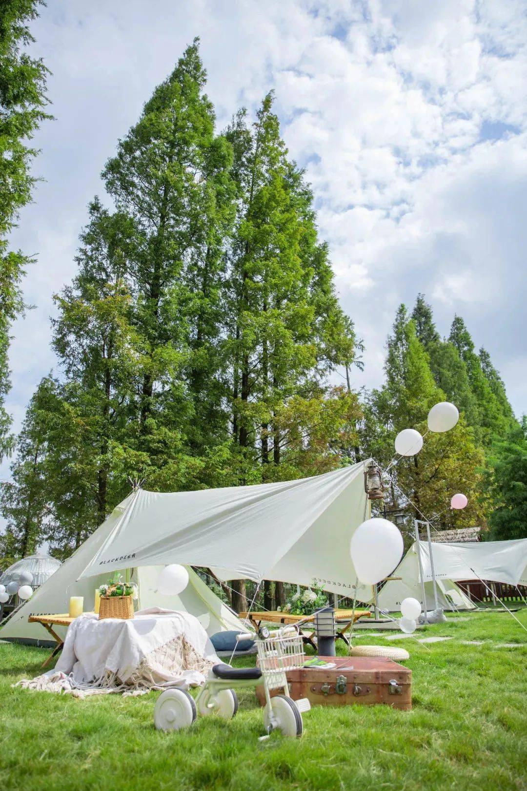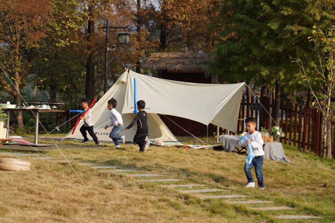 极具标志性的白色帐篷,满满的ins度假风。刚开业不久就已经成为了杭城新晋露营网红打卡地之一,小红书上已经被刷爆了。