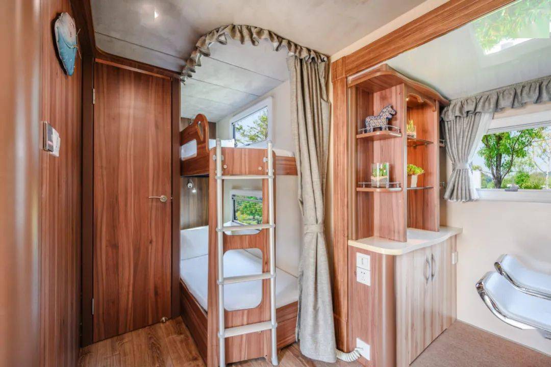 亲子主题房车,除了主卧之外,都配有上下铺,多孩家庭也有足够的亲子空间。