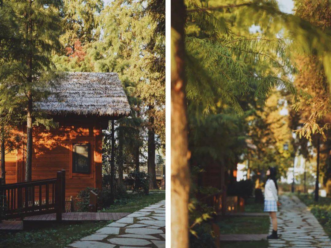 飞鸟、杉木、湖泊、小木屋,在暖阳下组合成了一副浪漫的欧洲油画。