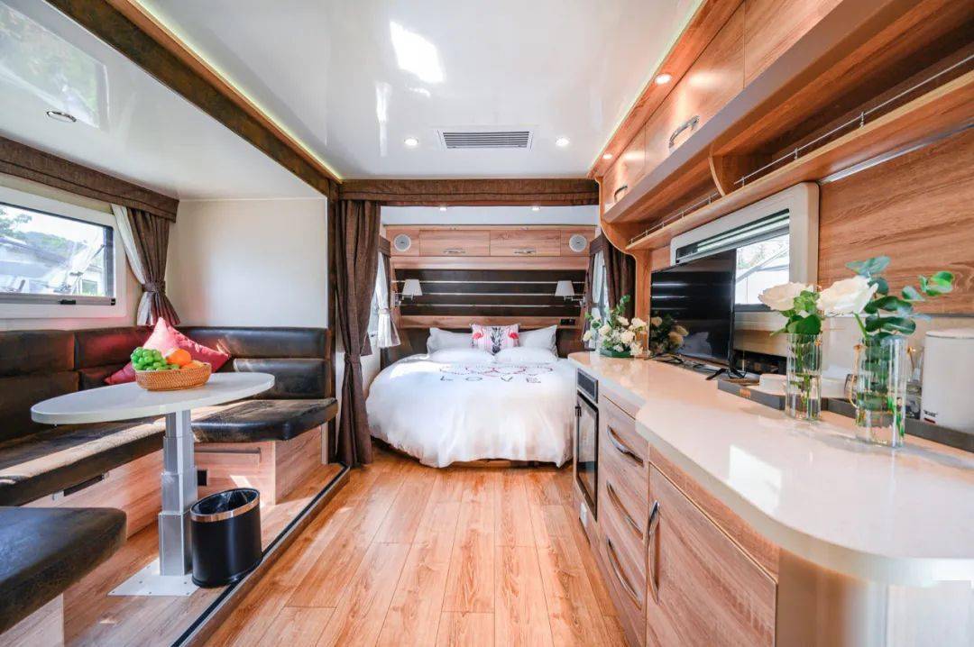 房车均为澳大利亚进口,内部设备也都为五星级酒店级别。 经过营地化的精心设计,灵活多变的空间让居住体验极为舒适。