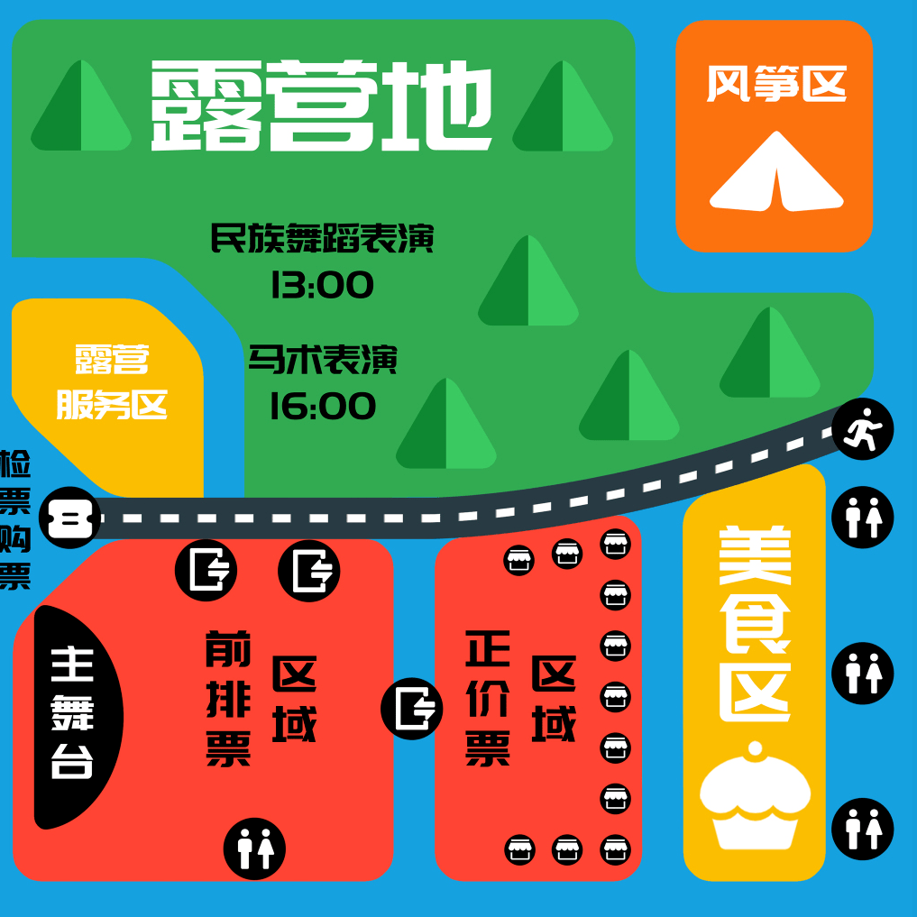 *由于本次活动人数众多,自助点位有限,所以自助帐篷区域采取提前预订点位的形式,敬请见谅。