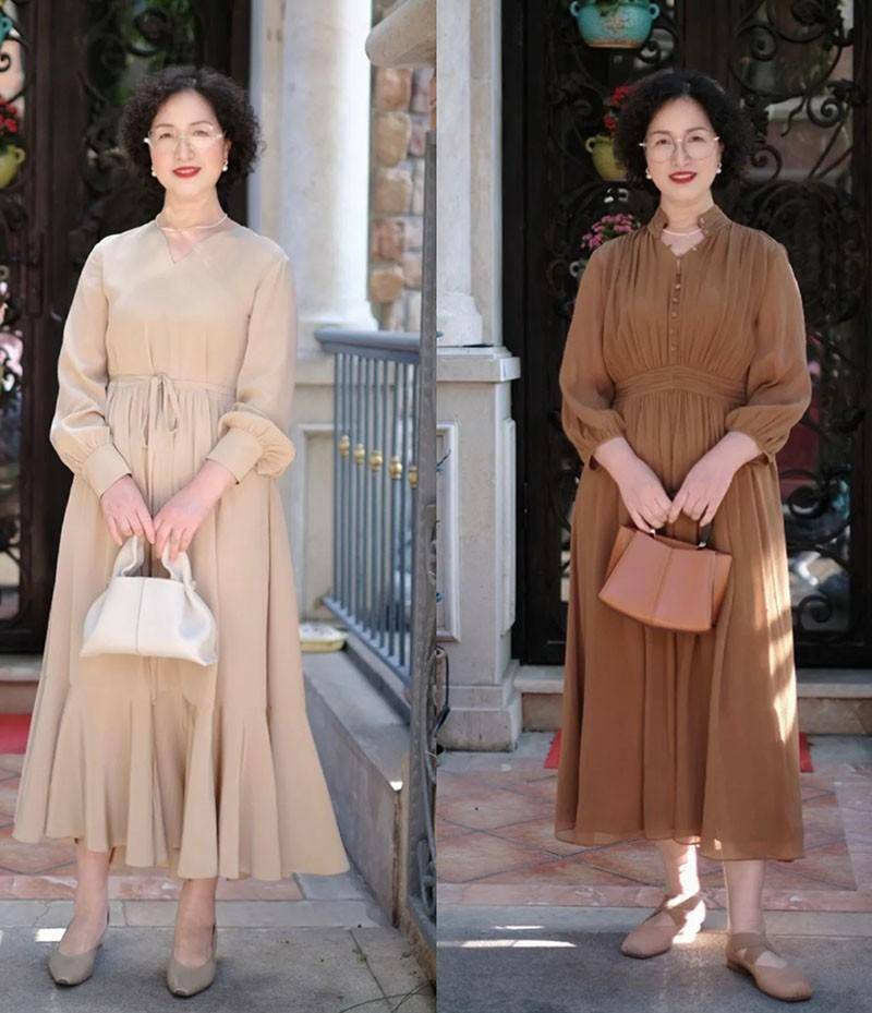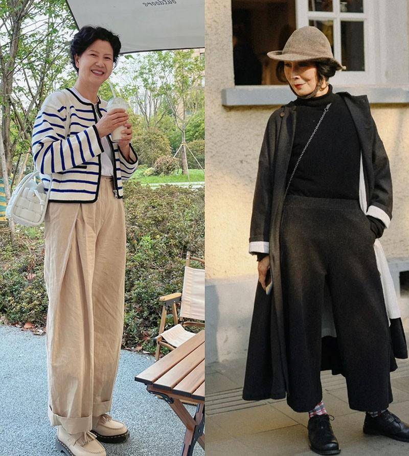 寿命长的物品可以在很大程度上发挥作用。上海的老太太特别喜欢长裙或长裤,它们从上到下形成流畅的线条,同时在服装中提供自由空间,有助于隐藏脂肪。身材搭配优质面料,营造出高级的视觉感受。
