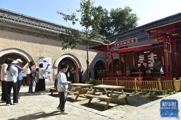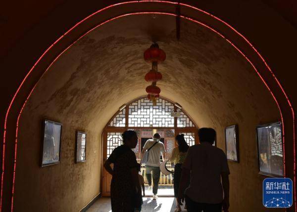 ↑ 6月23日,游人在三门峡市陕州地坑院景区内游览。