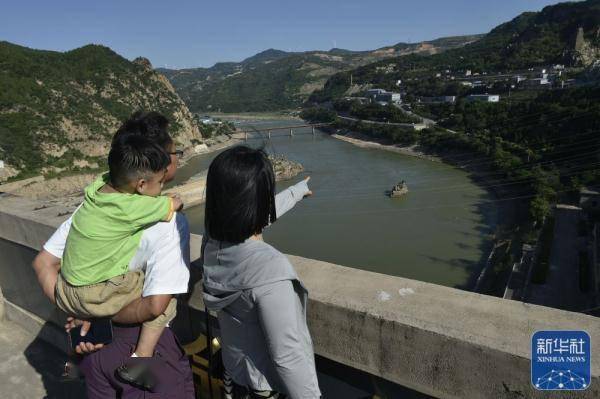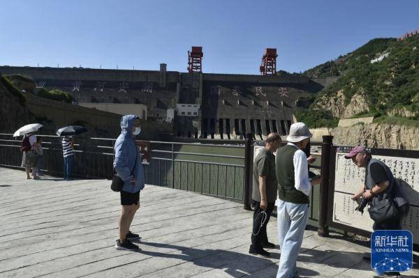 ↑6月23日,游人在黄河三门峡大坝风景区内游览。