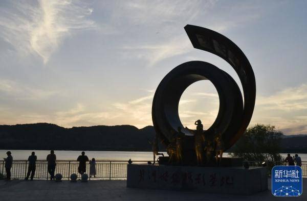 ↑ 6月23日,游人在位于三门峡市的黄河婚旅摄影基地欣赏夕阳风景。