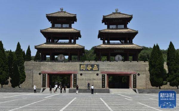 ↑ 6月23日,游人在三门峡市函谷关景区游览。
