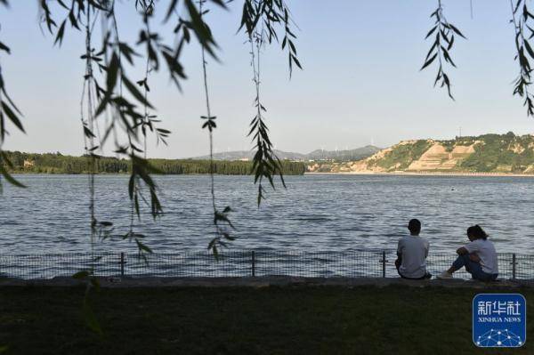 ↑6月23日,游人在三门峡市黄河公园内休闲。