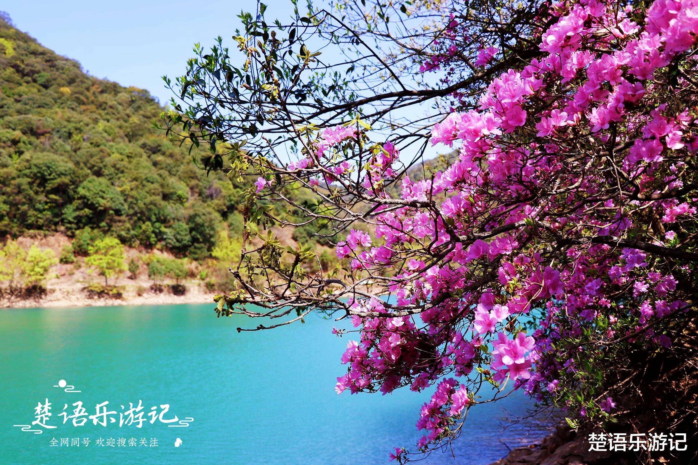 秦山村还有两株更美丽的杜鹃花。一是村东的月湖。月湖和秦山水库,湖岸和周围的山上都长满了杜鹃花,靠近水边的杜鹃花斜向湖面,给人一种被水照亮的感觉。