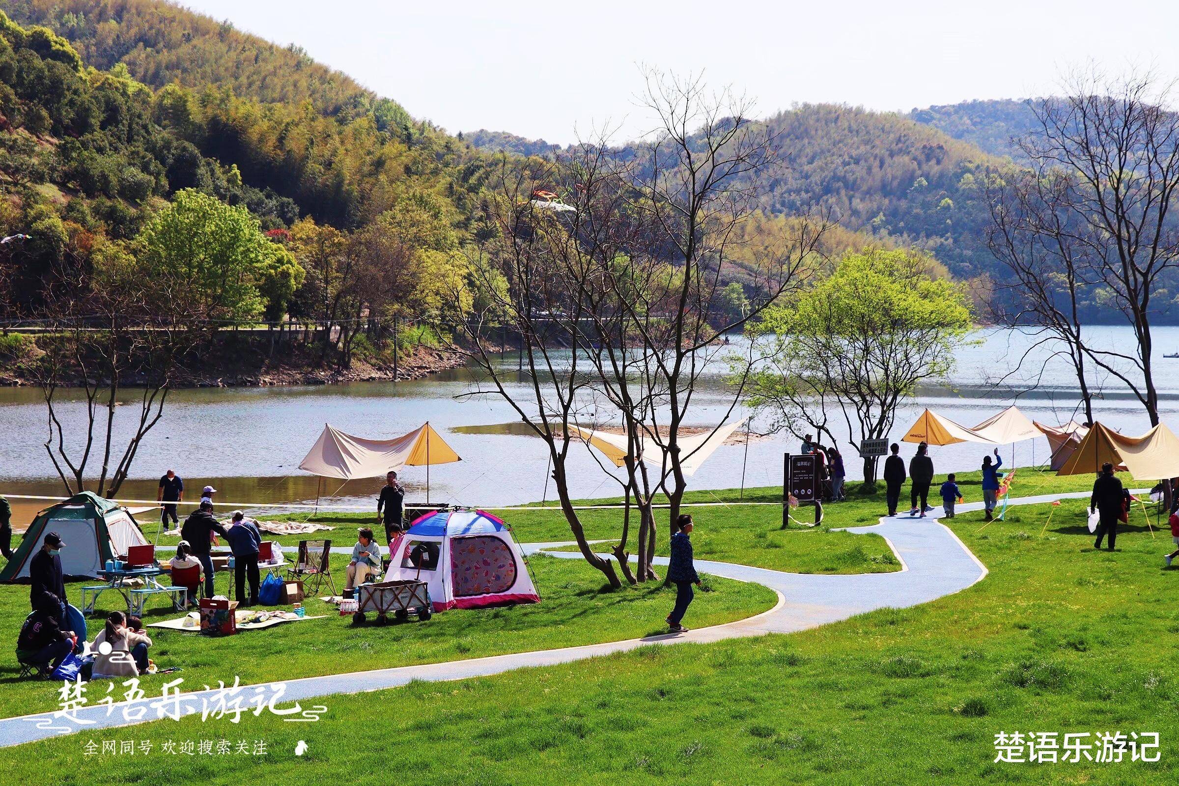 秦山村依山傍水,湖光山色。然而,他们并没有遵循旧的传统,而是带来了新的传统。村里相继打造了桂树园、桃金娘园、郁金香园、临湖书吧、水上乐园等景观。其中,水上乐园成为露营地。湿地公园位于湖谷内,开阔的田野里,绿草如茵,山清水秀。络绎不绝的游客来到这里“安营扎寨”,直接把这里变成了一个美丽的童话世界。