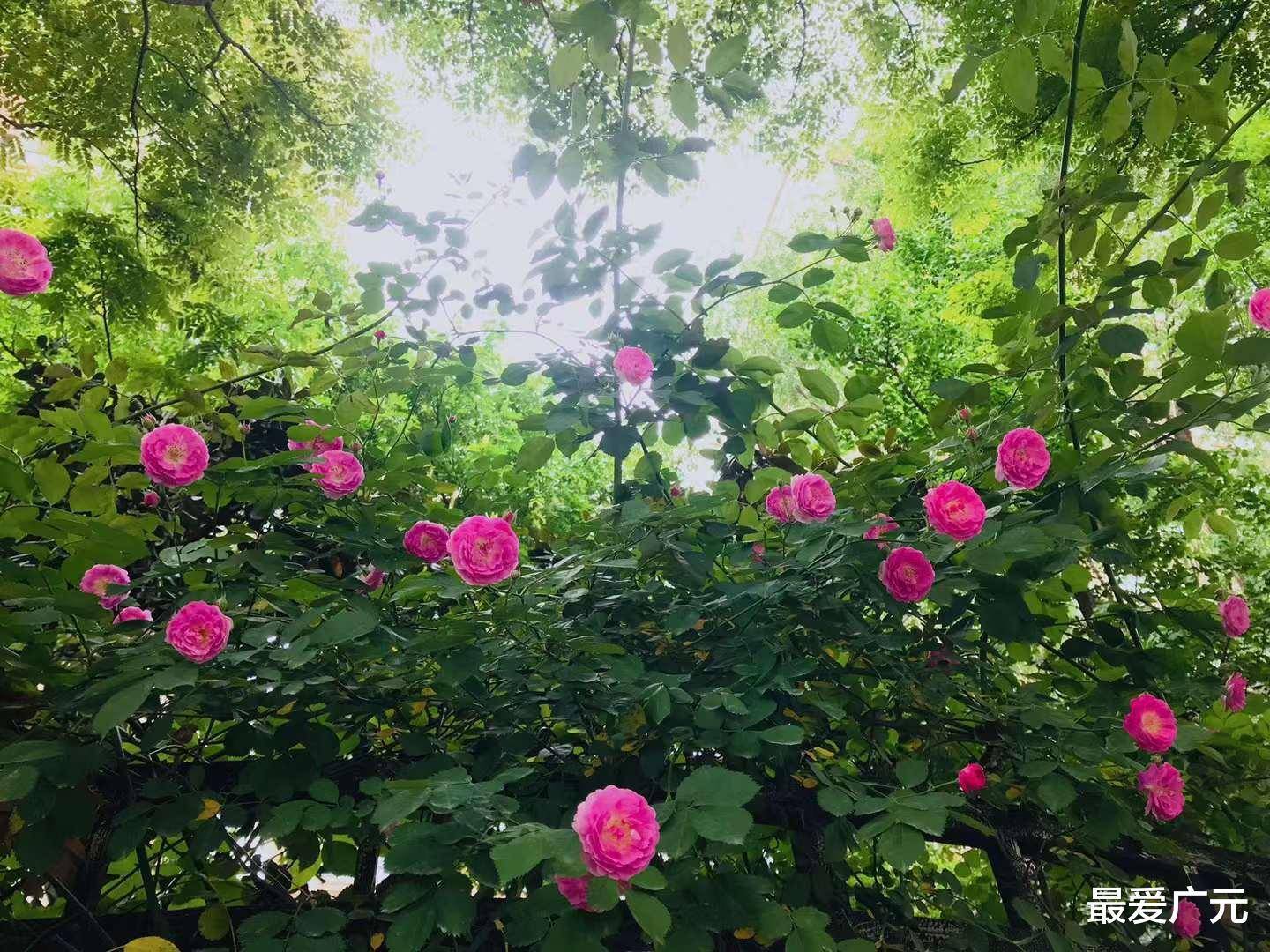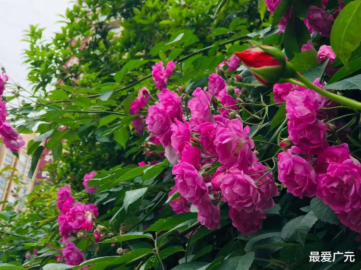 广元的蔷薇花正在盛开,粉红色的花朵热情地绽放,散发着芬芳的气味,非常美丽。
