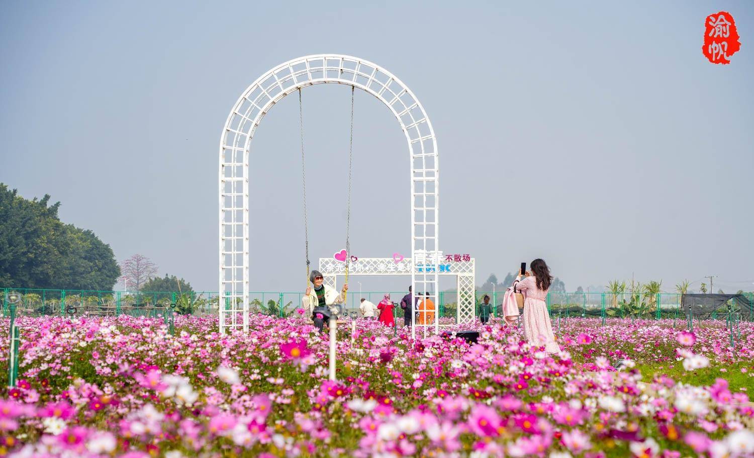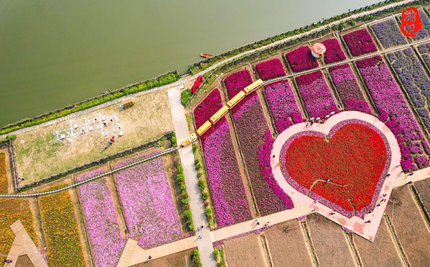七彩花田顾名思义,花卉品种不同,色彩丰富,因此花田的形状也各不相同。有方形的,有圆形的,最吸引人的就是中间的心形。妇女们在这里聚会登录并拍照并宣誓。