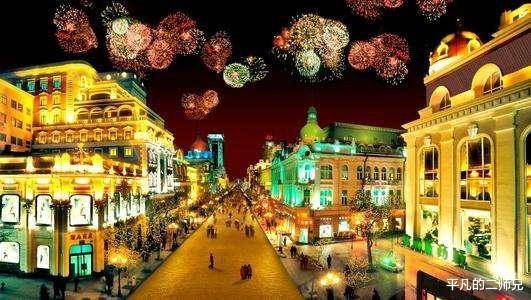 夜幕降临,各种欧式建筑矗立在灯火通明的街道两旁,街头艺人随处可见,或演奏乐器,或作画,或唱歌,充满节奏感。这就是神奇的哈尔滨!