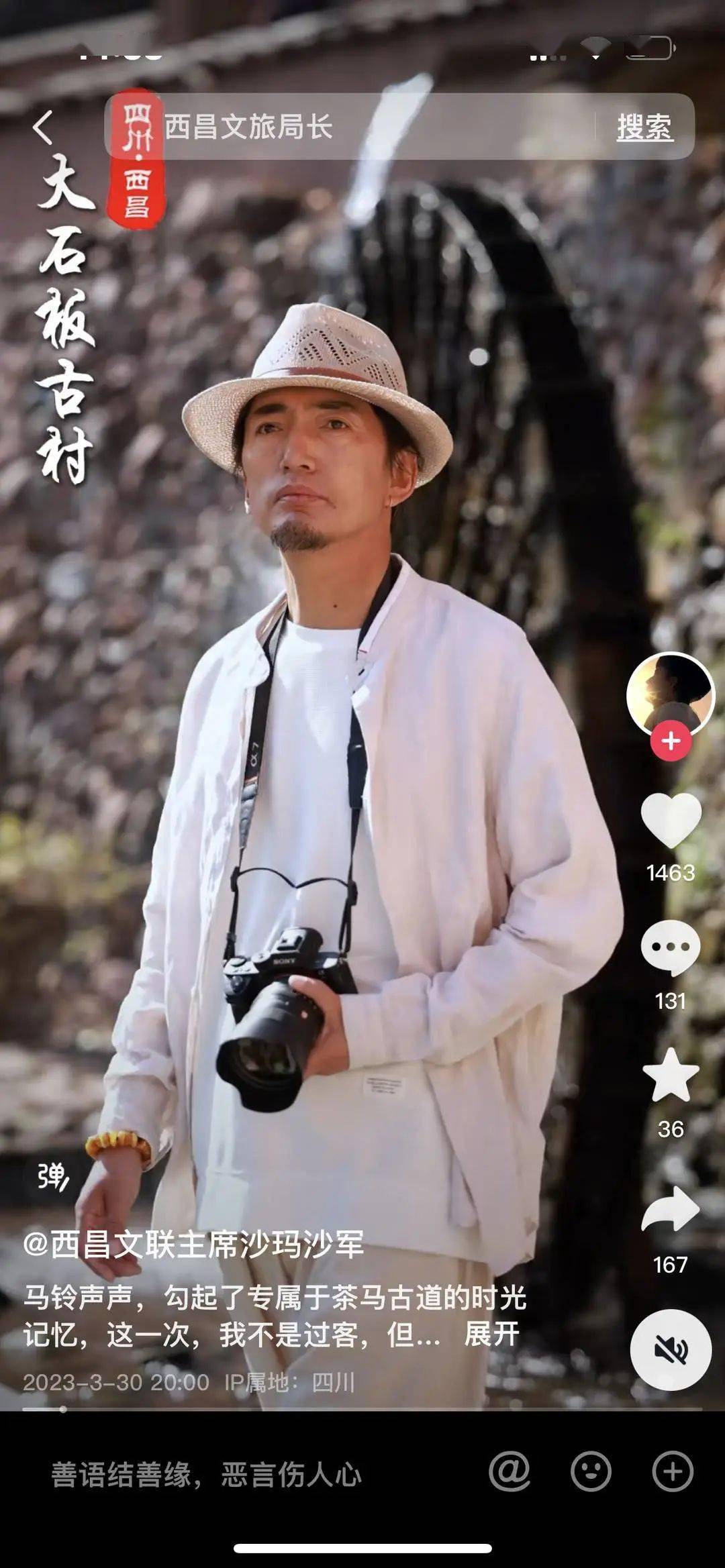这是沙玛沙军继预热篇、建昌古城篇之后,为推荐家乡西昌拍摄的第3条短视频。3月30日,视频发出后,在凉山、西昌市民的朋友圈里再次掀起了一波热度。