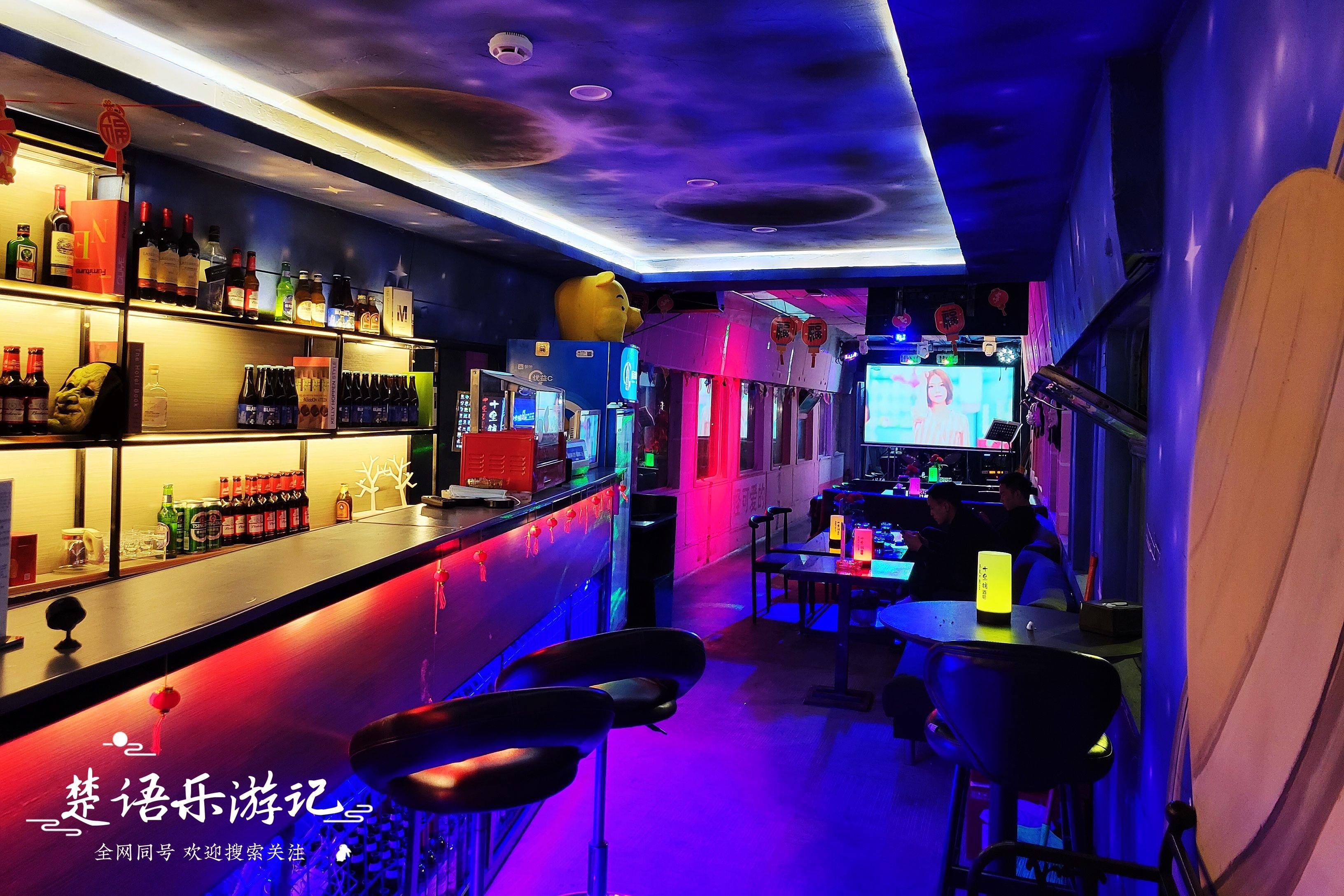 现在火车主题公园夜市基本安静,只有十里铺音乐酒吧还在坚持。虽然没有客人,但酒吧工作人员依然认真地站在前台。音乐餐椅上摆放着温馨的花束,投影电视上播放着动感十足的MTV,霓虹灯不断变幻色彩,仿佛挤满了宾客和朋友。