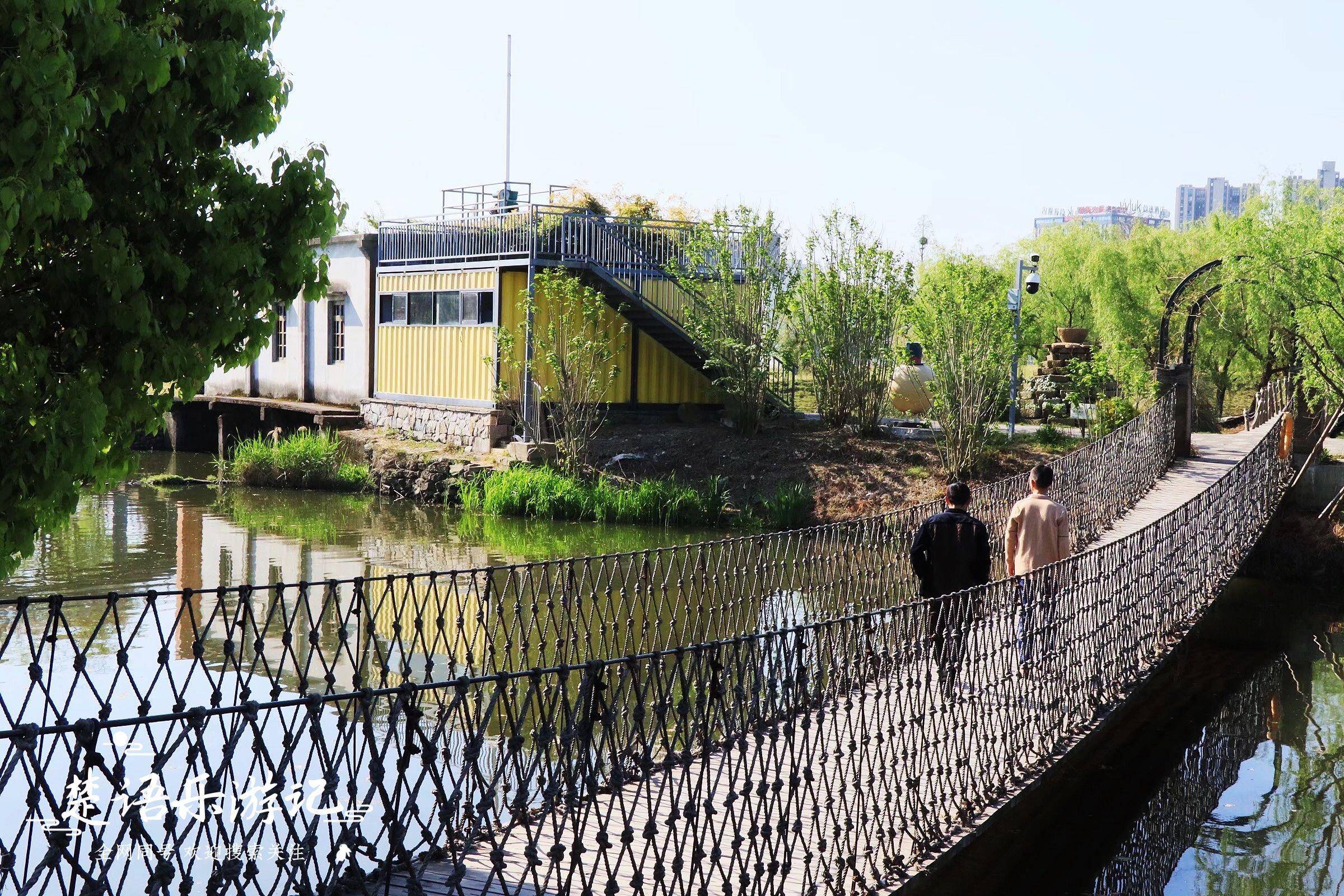 阿里田野农场西边是色彩缤纷的宝云庄花园。曾经这里百花齐放,美丽如画,如今却成了一片普通的农田。七彩田园南边还有一座桥。这座桥是一座网红吊桥,不仅颜值高,而且观赏点也不错。在这里可以观赏红塘魔方、凌波飘带、春枣玫瑰等景点。尤其是到了晚上,霓虹灯倒映在龙尾河上,非常漂亮。