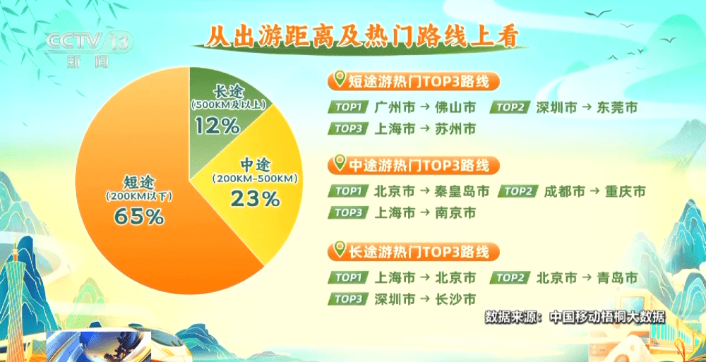 进一步洞察这部分用户的出游特征发现,短途游持续升温,占比达到65%。其中200公里以内的短途游TOP3的路线为广州市至佛山市,深圳市至东莞市、上海市至苏州市。200-500公里的中等距离出游占比为23%,其中热门TOP3路线为北京市至秦皇岛市,成都市至重庆市、上海市至南京市。500公里以上长途游占比为12%,其中热门TOP3路线为上海市至北京市,北京市至青岛市、深圳市至长沙市。