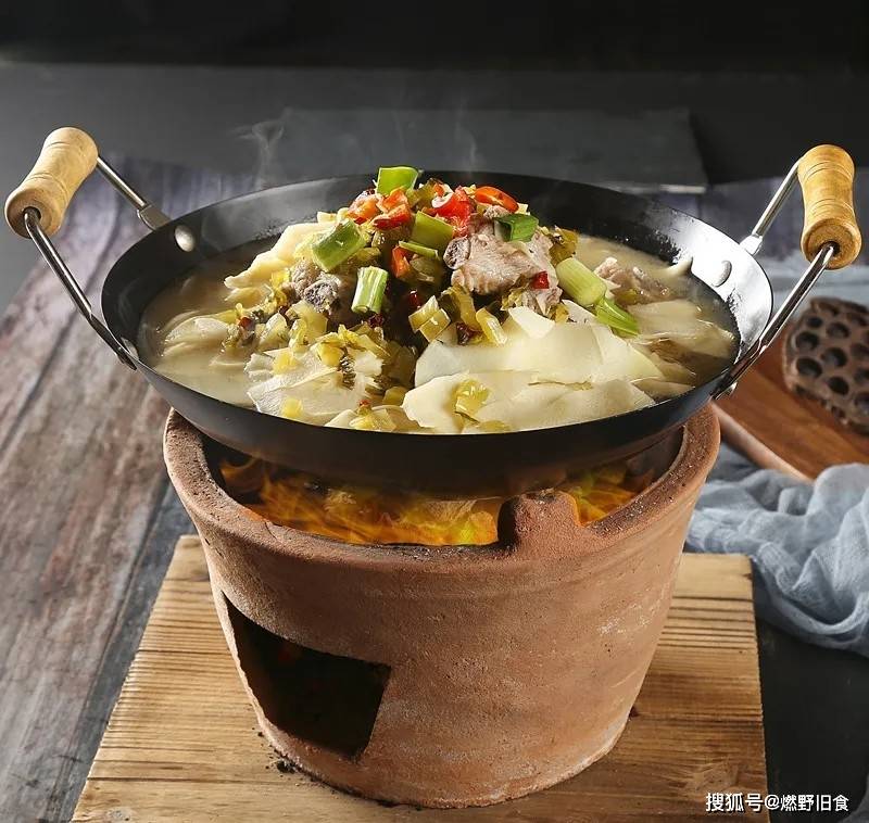 它的做法也不像其他火锅一样随烫随吃,而是要将各种搭配好的食材先炒再盛入砂锅,下面生起木炭小火慢慢煨。