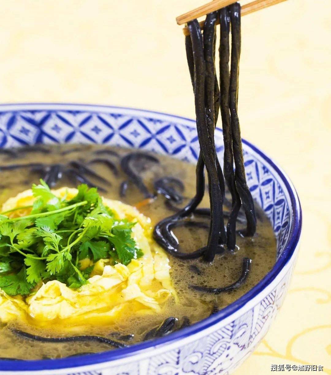 其中,最典型的就是竹炭面,它是将食用碳粉加入面粉中调匀、擀薄、切条,吃起来口感爽滑,特别有嚼劲。