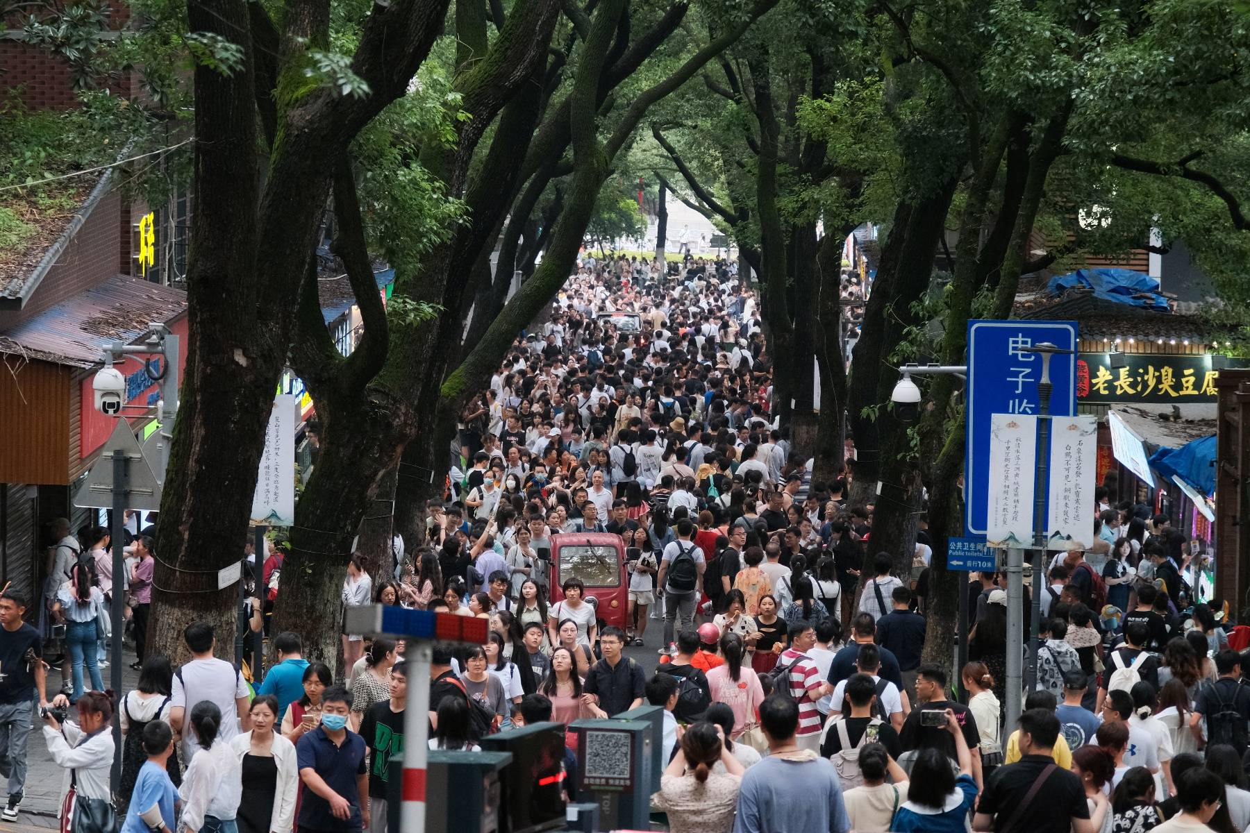 其称上午出发的时候,地铁上就已经挤满了游客,他们坐到湖南大学站,下车后也不用找路,跟着人流走就到了岳麓山的门口。他记得山门口人非常多,“全是排队的人,挤都挤不进去。上山的时候也是被人流推着走的,下山更是看到密密麻麻的人头。身处人流中,觉得自己非常渺小。”