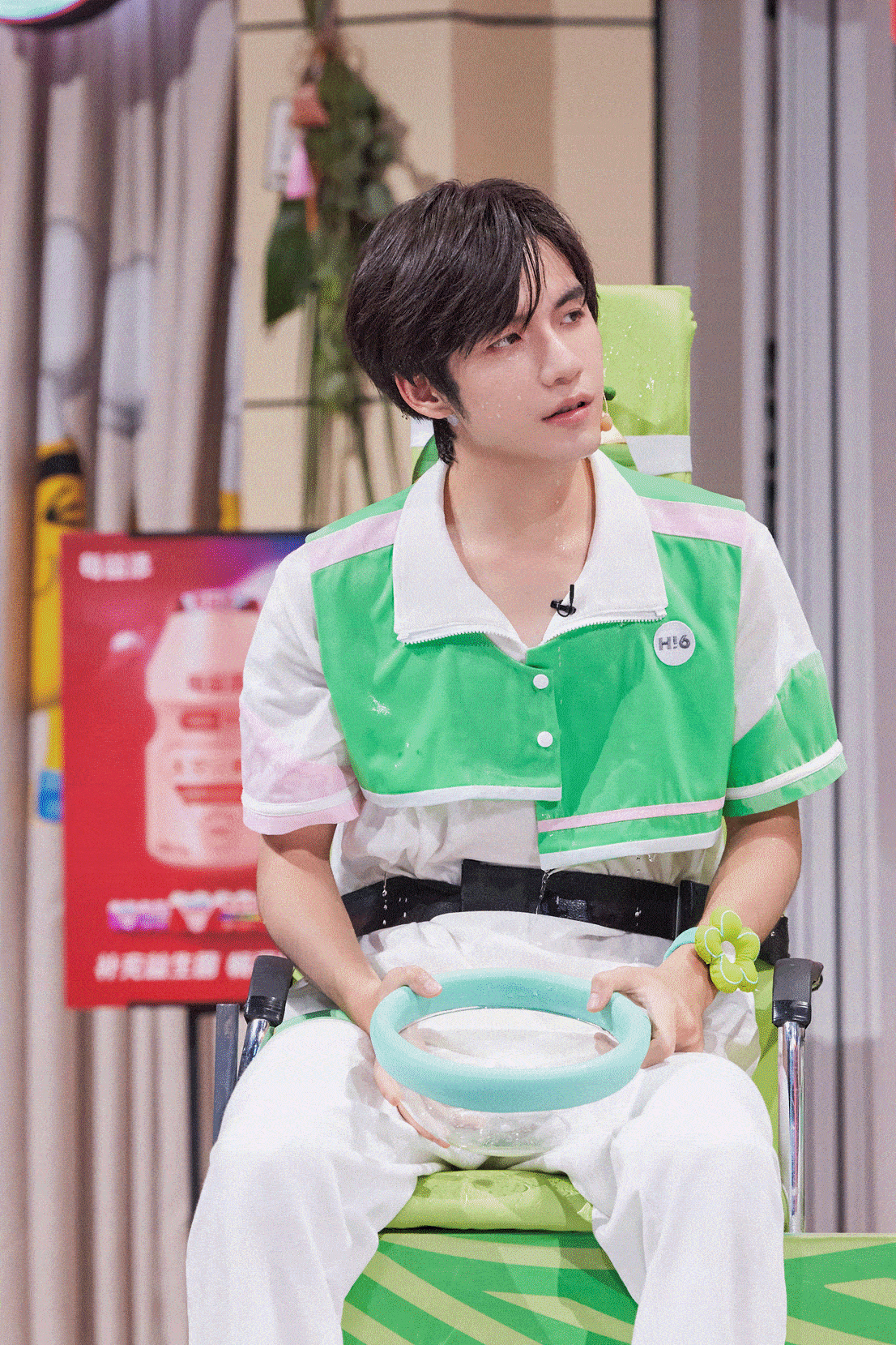 最后一轮“倒椅子答题赛”,女生坐在前面将答案写在题板上,三位男生坐在后排,商量给出答案,若男女生答案不一致,男生将接受泼水惩罚。当即将收到泼水惩罚时,秦霄贤将水火速倒入王鹤棣的盆中,王鹤棣一并泼向了旁边的张颜齐,一波操作行云流水!泼得张颜齐硬是在座位上愣了几秒才恍过神来。