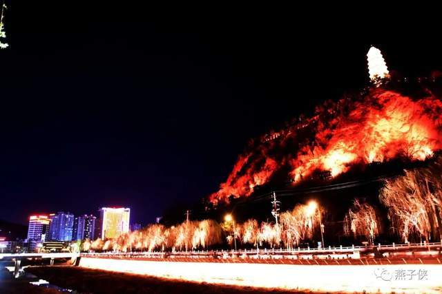 南泥湾参观用时3个小时,就基本上结束了,乘车继续前行,并于华灯初上时进入延安市区,在预订的餐厅吃罢晚餐,准备顺路去欣赏延安宝塔山夜景。