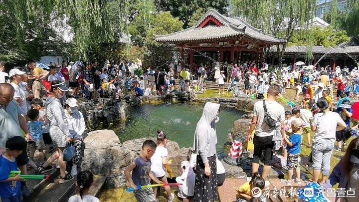 高温天气来袭,济南趵突泉公园、五龙潭公园等公园景区的戏水区域也格外热闹,孩子们还上演了“水枪大战”。“人气太火爆了!”济南市民刘女士说,她带着孩子去五龙潭公园玩,“没想到戏水区根本没有落脚的地。”