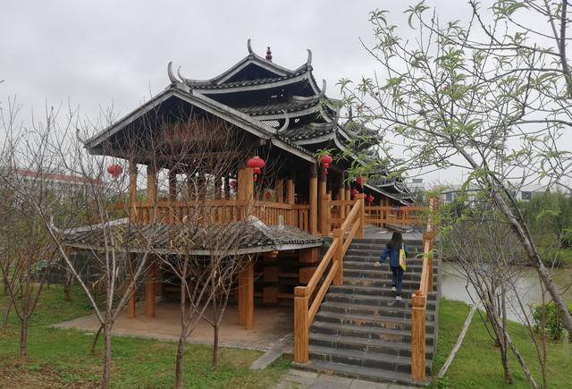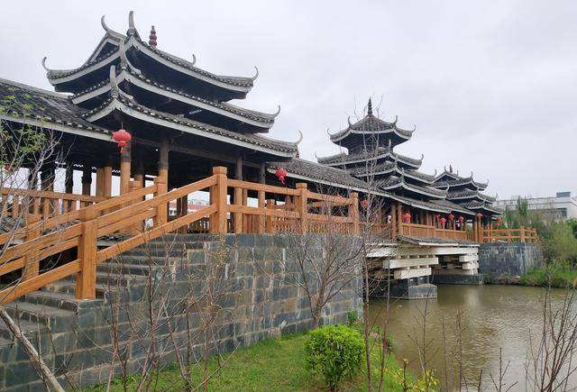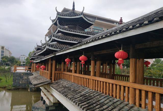 不孤湖景区有一座美丽的风雨桥。