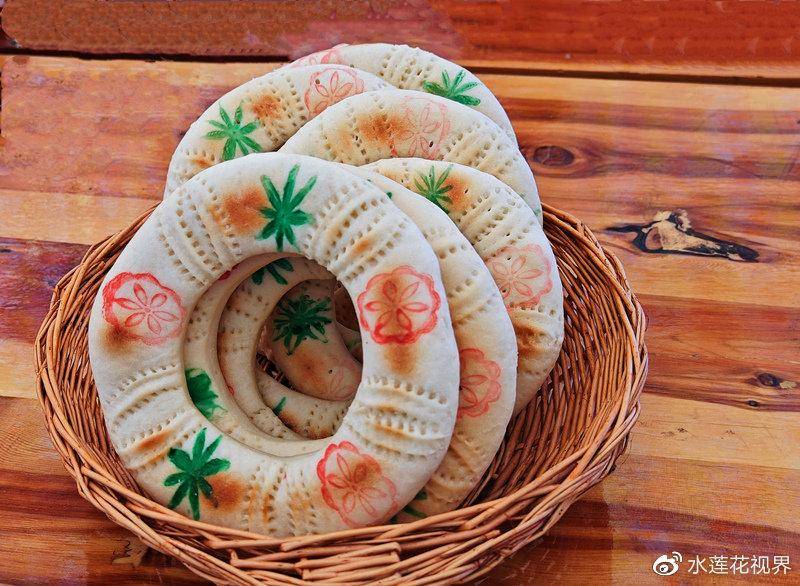 圈圈馍:在舟曲端午节所做的一种独特的风味面食,在面团上雕刻出花草虫鱼等图案点上颜料,然后烘烤而成。不同的图案代表人们对生活、对孩子的祝福和期盼,图的是吉祥顺利,团团圆圆之意。细细咀嚼,面香浓郁,回味无穷。