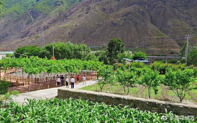 舟曲县土桥子村临江而坐、气候宜人、环境优美。鸟语虫鸣成赋韵,花香草绿伴云烟,葡萄飘香醉游人。走进土桥子村,放眼望去,荷塘美景幽深沉醉,小桥栈道巧夺天工;回首四顾,亭台阁楼错落有致、各式楼房整齐排列、村道里巷干净整洁,整个村子花团锦簇、绿意盎然、祥和宁静。信步在“中国美丽乡村百佳范例”的土桥子村,在葡萄架下摇曳的光影中,白墙、绿树、青瓦、红门,各种花卉小景观、休闲凉亭,既有五彩斑斓之美又有古朴厚重之感,是红绿相映、外秀而内美的康养小镇。