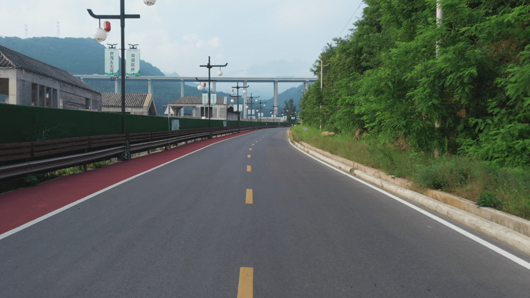 全线按一般四级公路标准建设,路基宽度10m、路面宽度9m,沥青混凝土结构,两侧绿化带1—2m,将绿化与公路相结合,使公路和谐巧妙地融入周边环境,完美体现自然道路景观