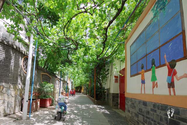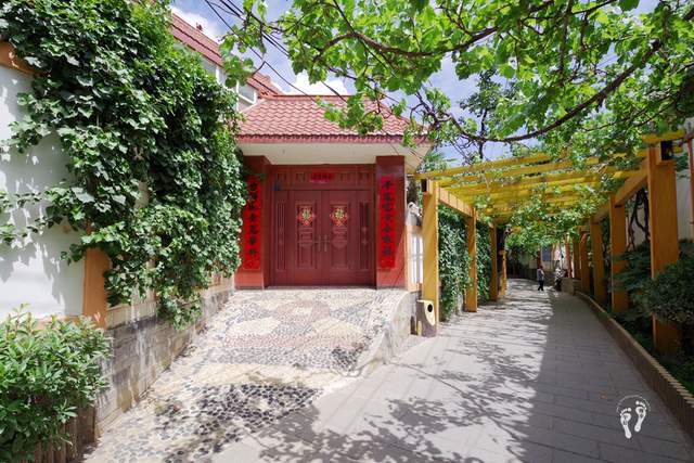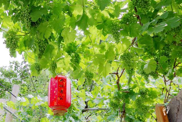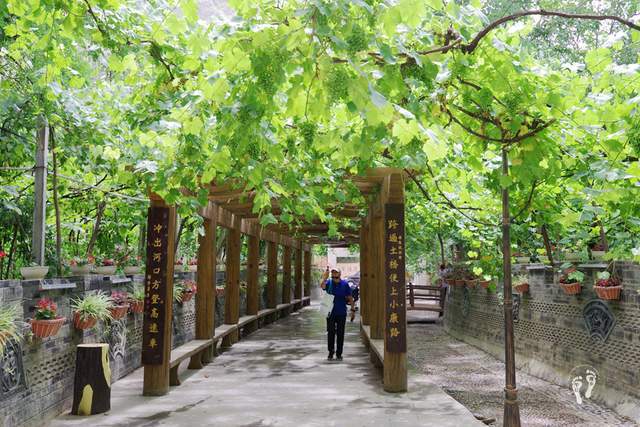 干净整洁的村道 错落有致的农家小院 整个村子花团锦簇、绿意盎然、祥和宁静,到处是各种绿植,绿油油的葡萄挂满树,一串串还没成熟的葡萄、令人垂涎欲滴。