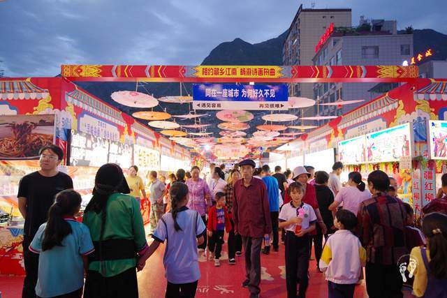 在楹联文化隔壁街隔壁恰逢2023年甘肃舟曲县“寻味舟曲”特色美食节,更能让人感受到舟曲的温度。漫步在美食街上,各类美食香气扑鼻,应接不暇。五颜六色的招牌,令人眼花缭乱。据悉举办本次美食节是全县以喜迎甘南藏族自治州成立70周年为载体,围绕美食旅游,紧紧抓住宝贵市场复苏机遇的重要举措,力求在精品旅游、精品美食上做文章,进一步挖掘、传承、弘扬舟曲传统美食文化,全面促进文旅融合发展,发挥文化旅游示范带动作用,引领餐饮市场快速发展,活跃县域经济、丰富商业业态,传承楹联文化、展现舟曲活力。