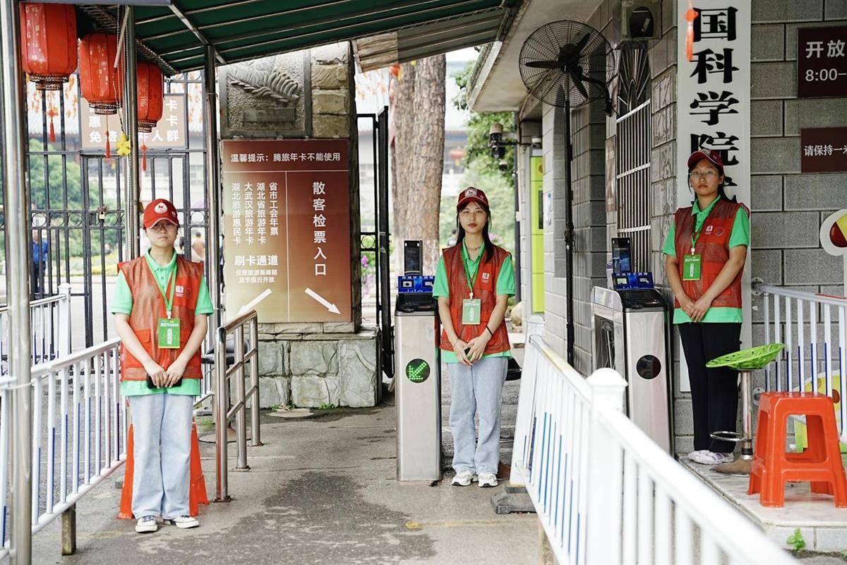 在武汉植物园,头戴小红帽、身穿红马甲的文旅志愿者正举着文明标语的手持牌,协助工作人员进行检票,提醒游客注意安全,文明游玩。文旅志愿者陈思语正热情地为前来游玩的游客指引最佳路线,提供便捷服务,游客们回馈的笑脸也让她绽开了笑容,“作为文旅志愿者的一分子,我们在节假日里为大家提供志愿服务,最希望得到的就是来自大家的肯定。希望通过我们的努力,让安全文明出游更加深入人心,让更多的人有这个理念,进而提升我们大武汉文旅的整体质量。”