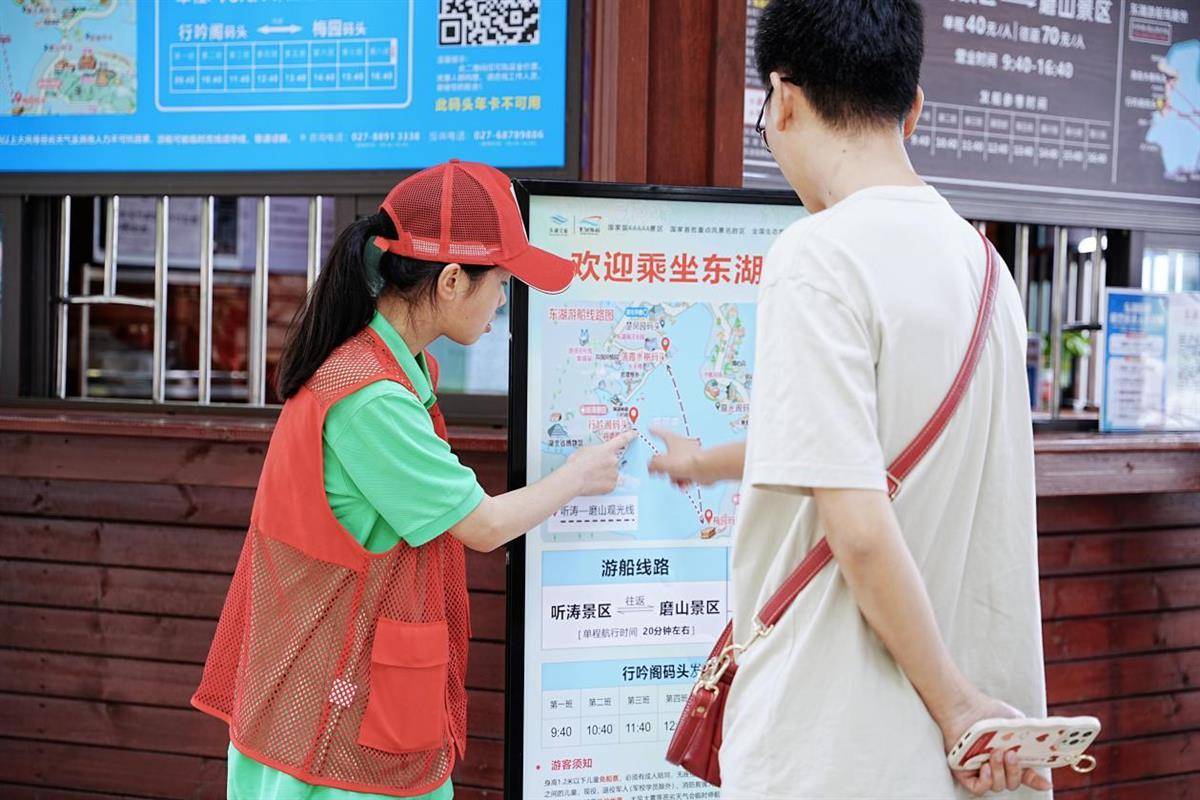 正值盛夏,武汉东湖的游客量倍增,很多市民来到东湖游船体验乘船的乐趣。武汉文旅志愿者王霞介绍:“这次假期有不少小朋友出游,我们尽自己最大的力量提供志愿服务,倡导安全出行,让他们放心游玩,度过一个开心的端午节。”