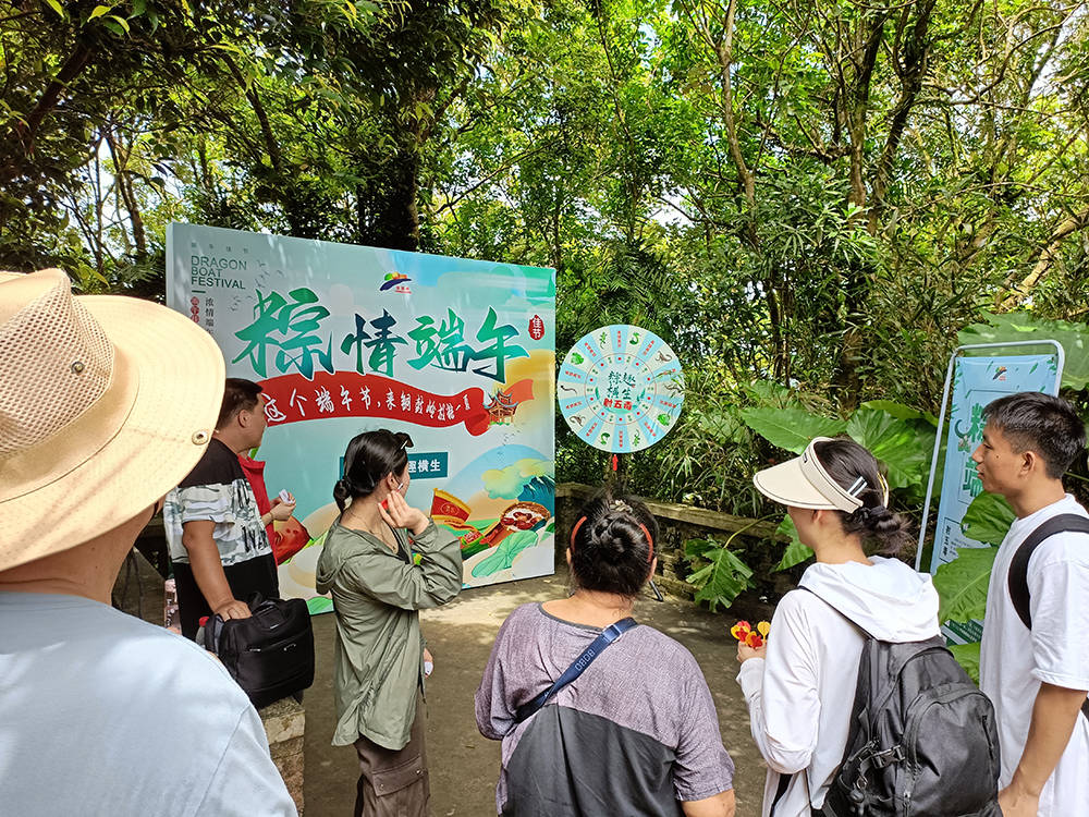 与此同时,在山顶处,射五毒活动也在如火如荼地进行,工作人员讲解游戏规则之后,大家都跃跃欲试,有一家人齐心协力射飞镖赢礼品,也有朋友之间互相PK,活动现场氛围火热。