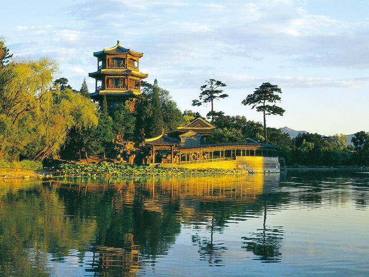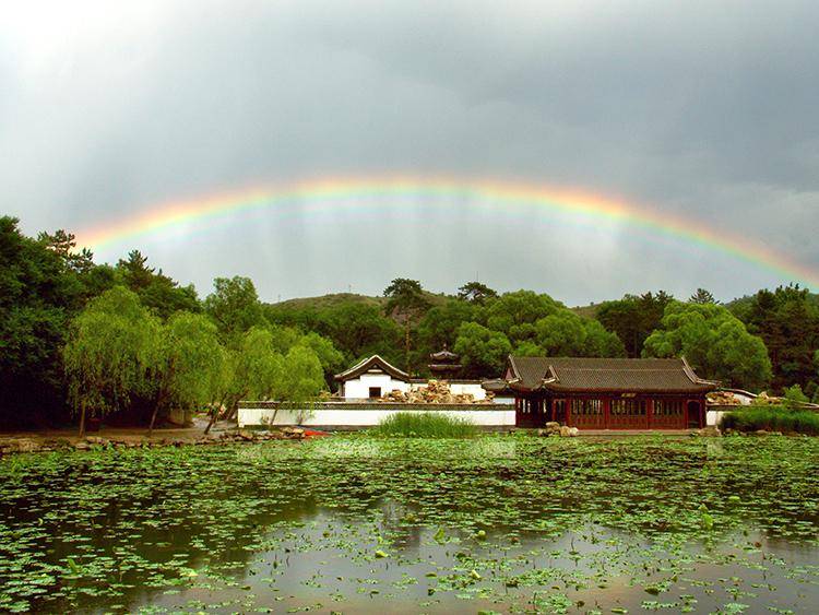 金山,位于避暑山庄的南部。这里有一座高18米的巨大佛塔,游客可以登上佛塔上,俯瞰整个避暑山庄的美景。