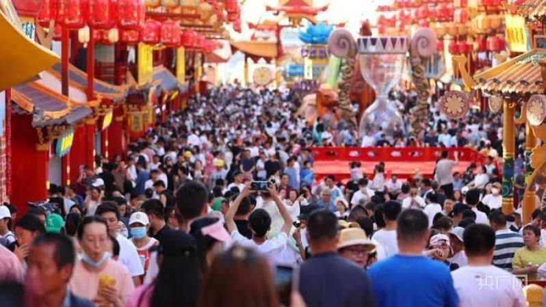 开城第一天,在10000余平方米的大型夜经济文旅T字型街区,游人如织,整个街区以唐风古韵的建筑风格结合新疆特色文化元素,以文化故事提炼、沉浸式场景还原、“舞台+互动+表演”、灯光科技等方式展示都市夜间繁华景象,呈现出集文化体验、美食畅享、民俗娱乐、文创潮玩、网红打卡等于一体的沉浸式汉唐风情文化旅游休闲街区。