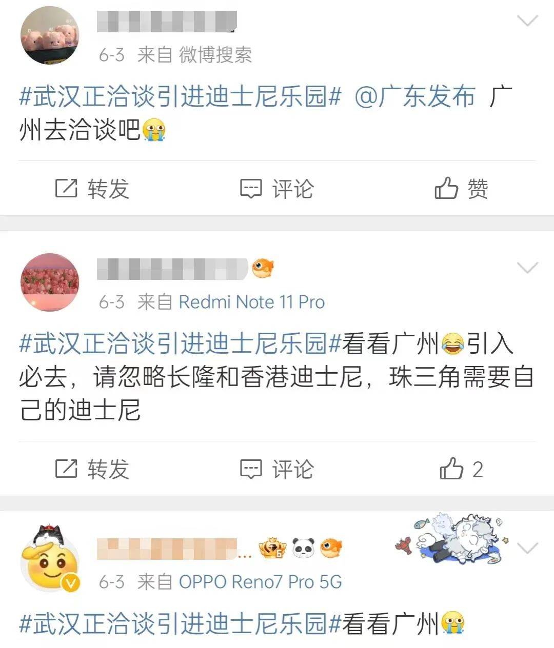 比如,6月4日武汉被辟谣之后有广州街坊在人民网领导留言板上向市委书记建言:“广州应积极争取迪士尼乐园落子”、“成不成一回事,但态度应该积极”。