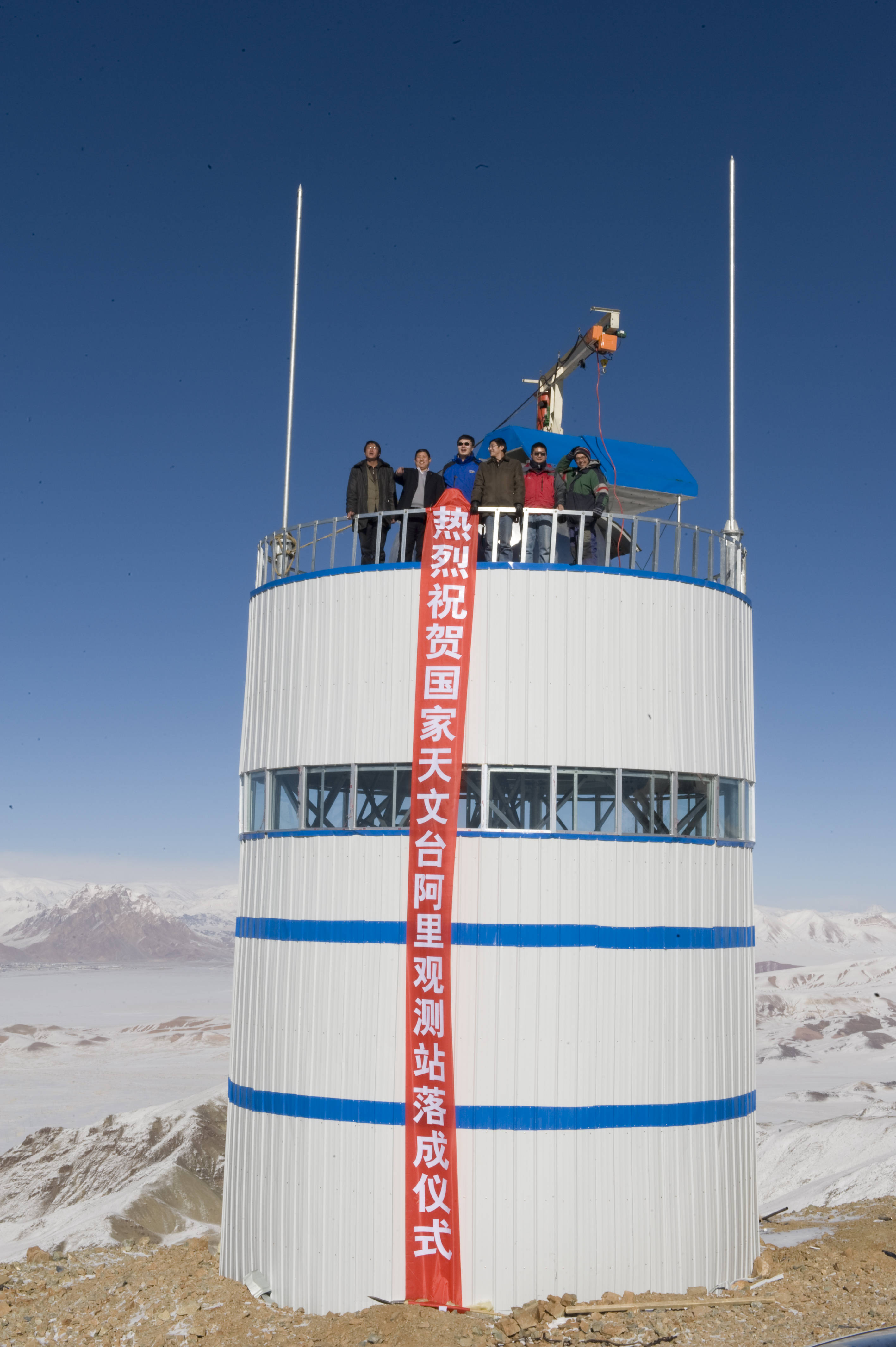 ↑阿里站第一个观测塔落成(2011年摄,受访者供图)。